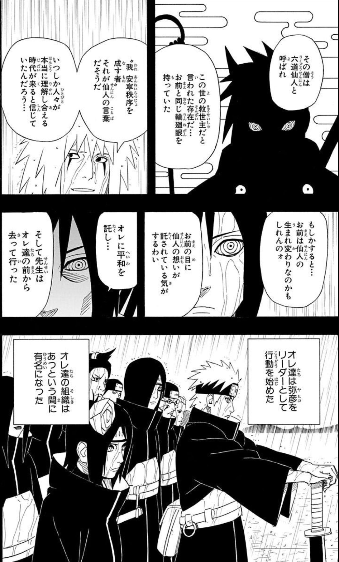 暁はもともと、雨隠れの里で戦争孤児として育ち、自来也に師事した弥彦がリーダーとなり、長門や小南とともに「武力に頼らない平和」を目指してつくられた組織でした。