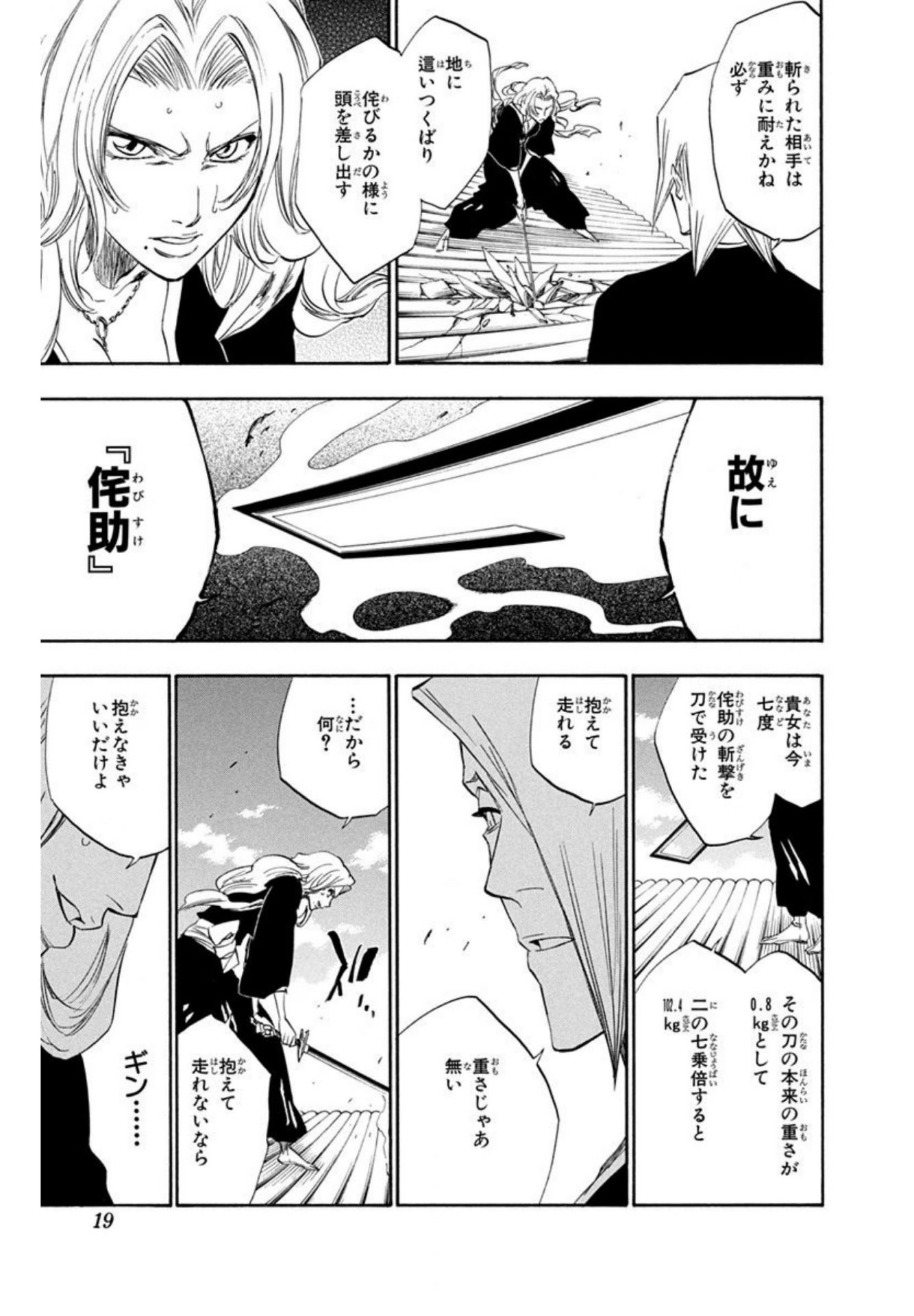 [42]同期に対してでも職責を果たすイヅル。ええ子なんやろなって伝わりますよね。吉良イヅル「斬られた相手は重みに耐えかね必ず 地に這いつくばり 詫びるかの様に頭を差し出す 故に『侘助』」20巻169話