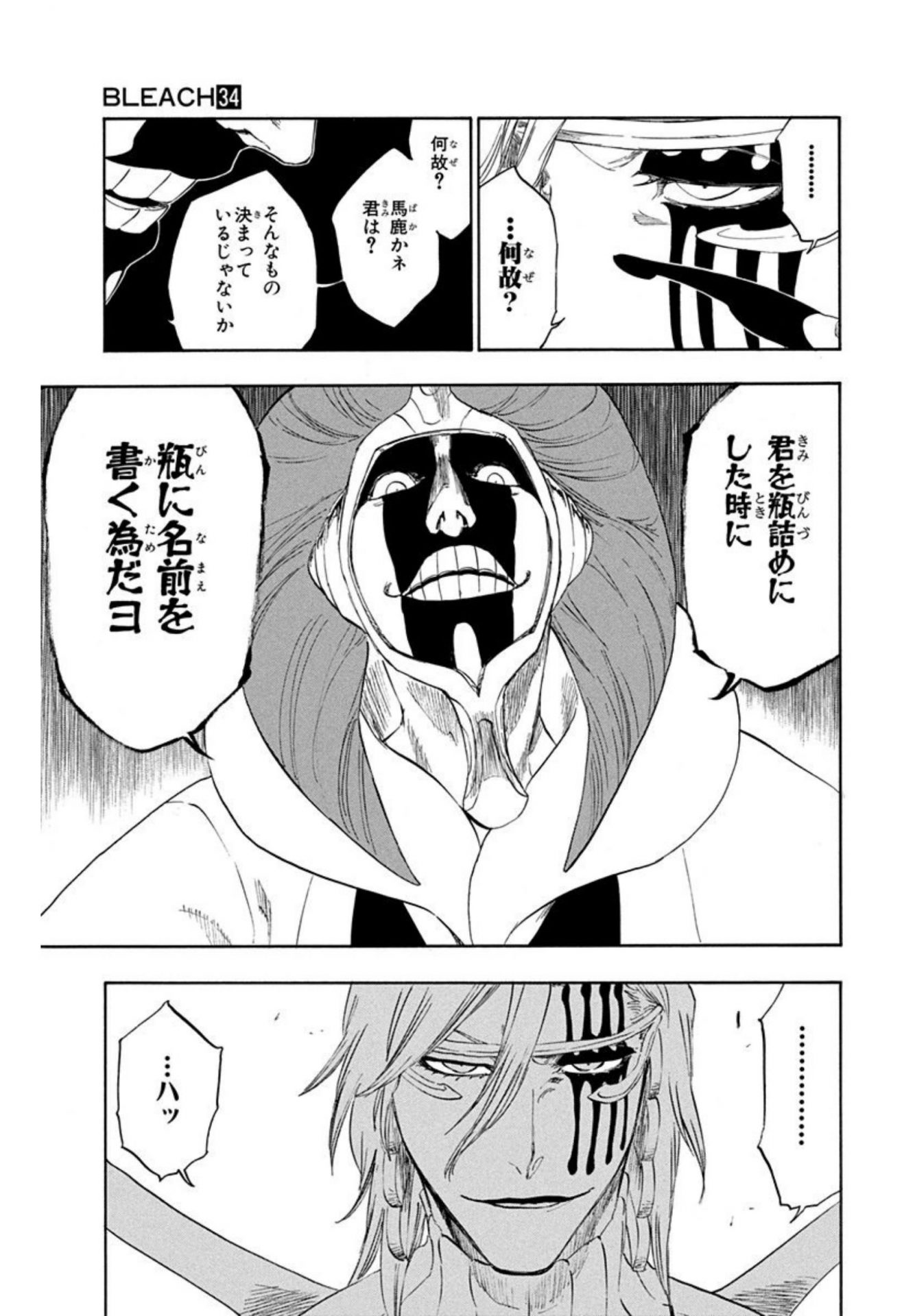 涅マユリ「君を瓶詰めにした時に瓶に名前を書く為だヨ」34巻299話