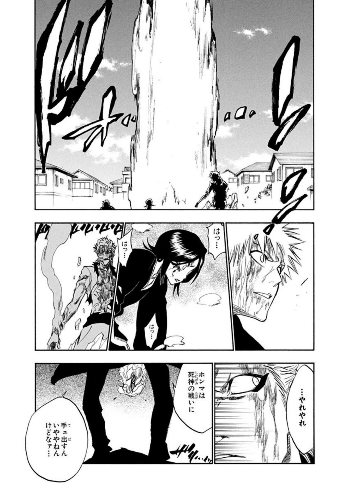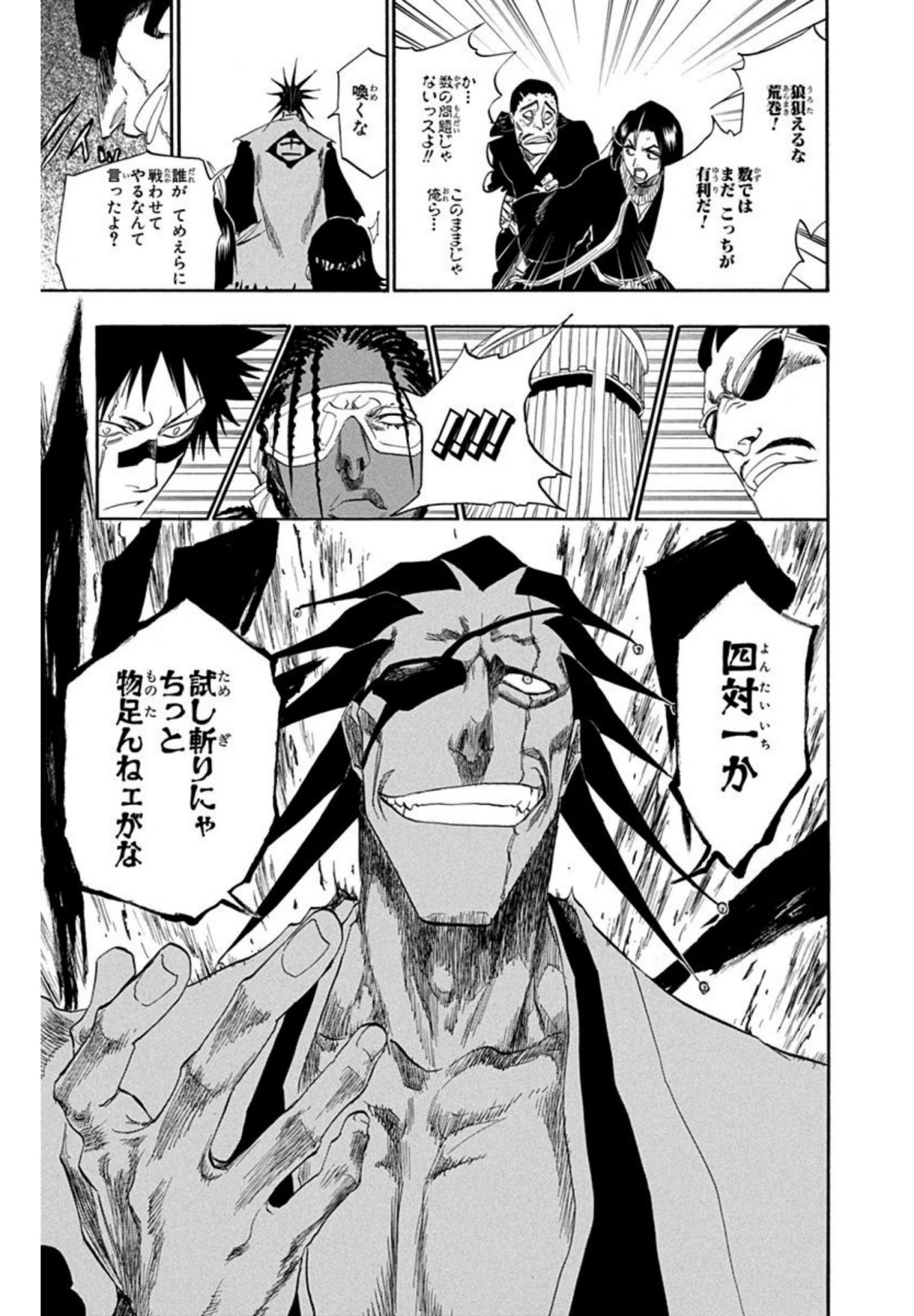 [56]悔しがる剣八!レアなシーン。更木剣八「四対一か 試し斬りにゃちっと物足んねェがな」16巻138話