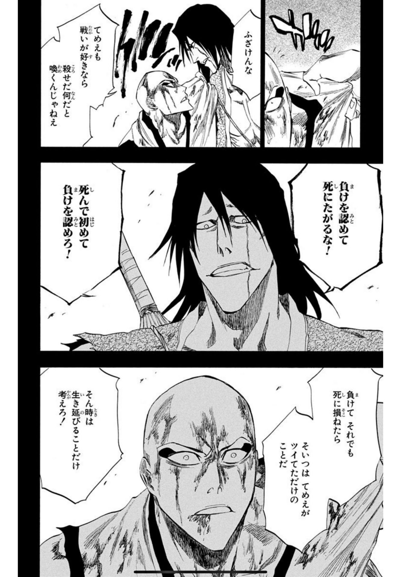 [58]一番死神っぽいセリフ。更木剣八「負けを認めて死にたがるな! 死んで初めて負けを認めろ!」24巻206話